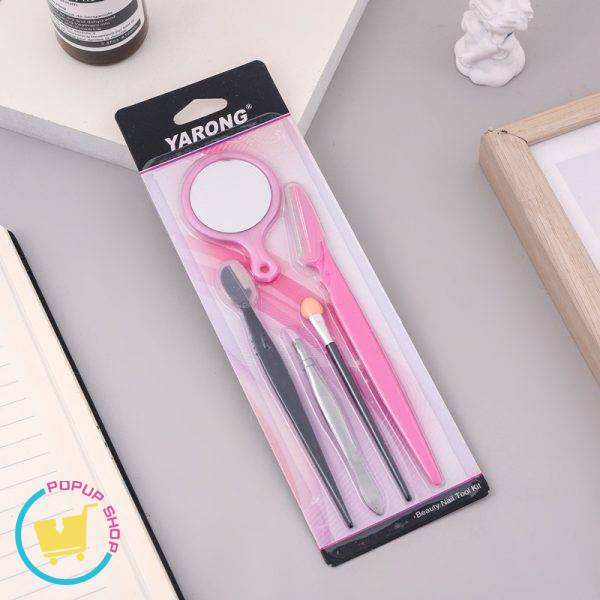 Beauty tool set, facial grooming kit, facial hair removal kit, portable, perfect to carry along on travel. Includes mini mirror, face razor, eyebrow razor, eyeshadow sponge applicator, and tweezer.