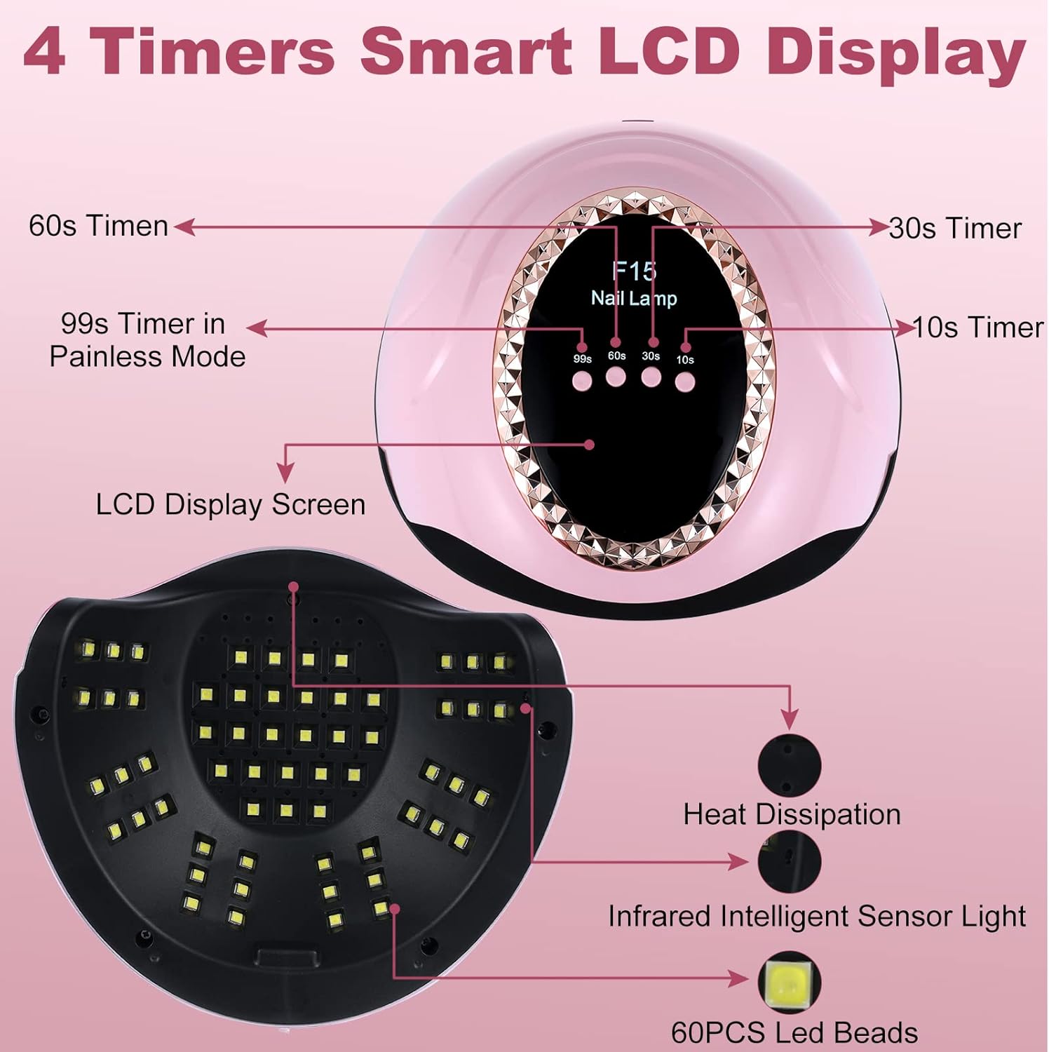 Professional UV LED Nail Dryer with 60 Beads & Smart Sensor