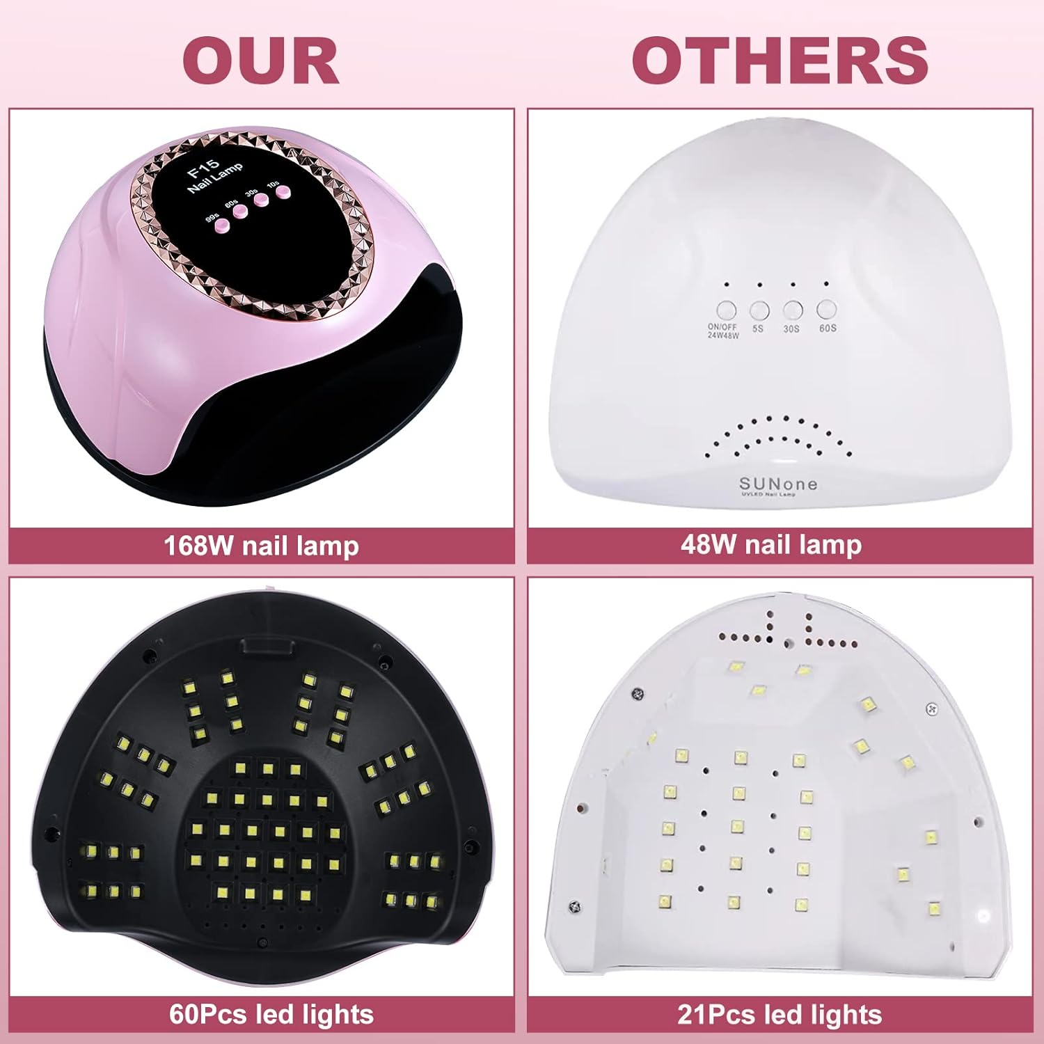 Get salon-quality nails with the UV LED Nail Lamp, featuring 60 lamp beads for fast, even curing. This professional nail dryer offers 4 timer settings and an automatic sensor for easy, hands-free use. Perfect for gel nails, it ensures efficient drying without overheating. Ideal for home or salon use, this durable UV LED nail lamp delivers flawless results every time